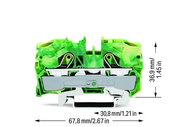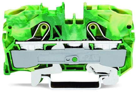 2-проводные клеммы с заземлением; 10 мм² Wago 2010-1207, подходят для исполнений Ex e II; боковая и центральная маркировка; для DIN-рейки 35 x 15 и 35 x 7,5; Push-in CAGE CLAMP®; 10,00 mm²; зеленые-желтые.