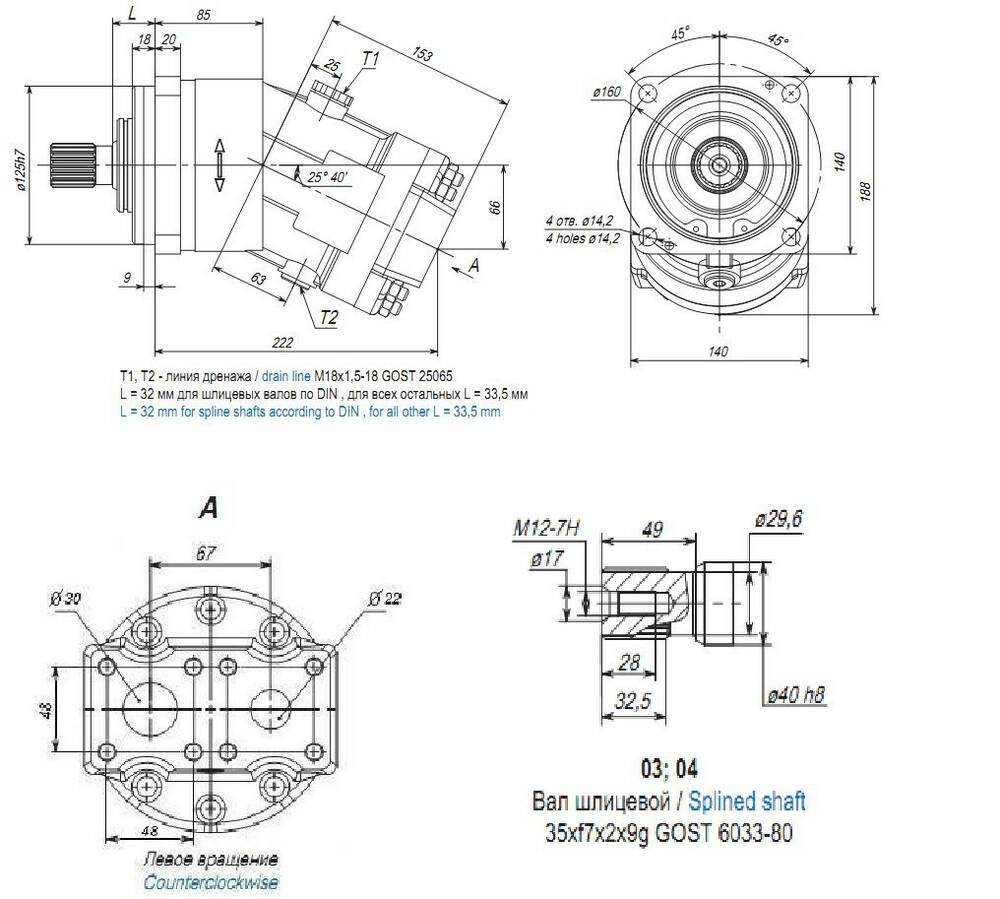 Аксиально-поршневой гидромотор PBF10.4.56.04.06 Гидросила