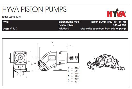 Насосы Hyva производятся в нескольких вариантах, с установкой на четырех, на трех отверстиях, и для всех видов соединительных фланцев. Существует также возможность объединять насосы, позволяя сформировать двухсекционный насос. Мы поставляем различные виды переходников и кронштейнов для установки насоса в разных местах.