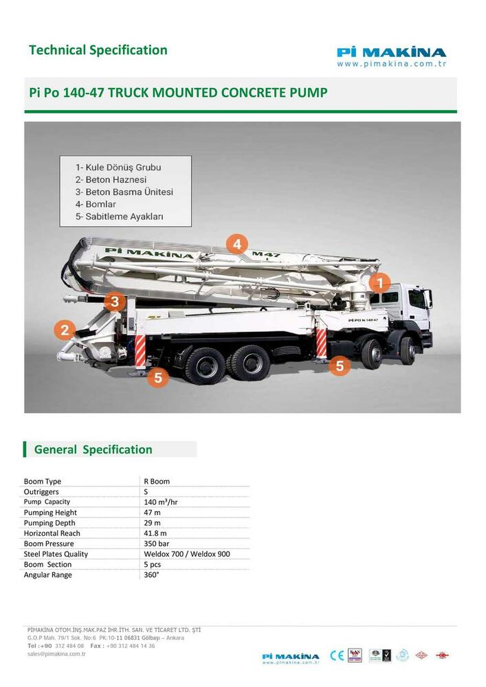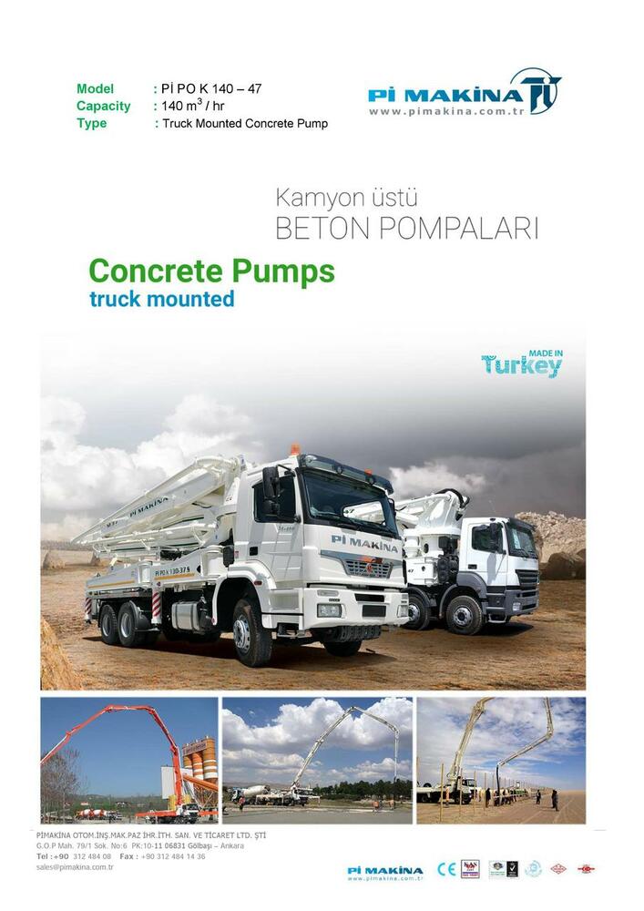 Pi Makina недавно достигла огромных результатов в области бетононасосов и усилила свое имя, установив бетононасосы на грузовиках, которые пользуются большим спросом на рынке. Благодаря научно-исследовательскому подразделению, которое постоянно совершенствует технологии и инфраструктуру бетононасосов, оно постоянно пересматривает свою продукцию и, таким образом, делает свое имя известным на внутреннем и международном рынке.