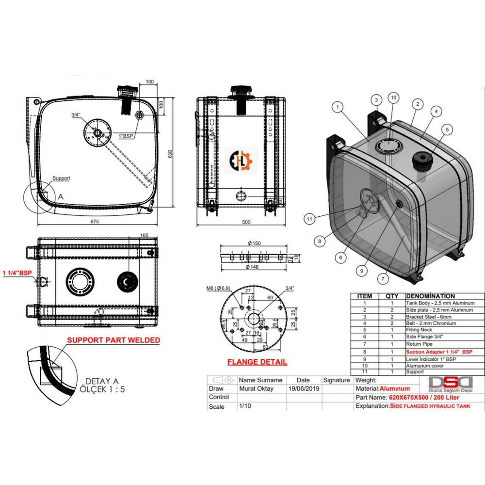 Компания Duzce Saglam Depo создает оригинальные алюминиевые гидравлические баки всех видов. Помимо обычных размеров, у них имеется специальная линейка продукции. Используемый алюминий высокого качества в соответствии со стандартами BS EN 10204/3.1 - это сплав 5754, закаленный до состояния H111.