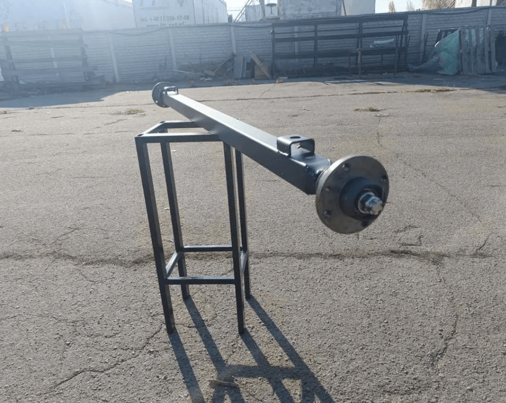 Основой балки есть квадратная труба 50х50 мм со стенкой толщиной 4 мм. Такой профиль обеспечивает высокую жесткость, не деформируется во время погрузки и выдерживает длительное использование без потери своих характеристик. Расстояние между посадочными местами колес составляет 155 см, что позволяет устанавливать ее на большинство стандартных прицепов с шириной борта 120 см. Расстояние между центрами креплений под рессору – 117 см, что гарантирует правильную геометрию и равномерное распределение веса на обе стороны.