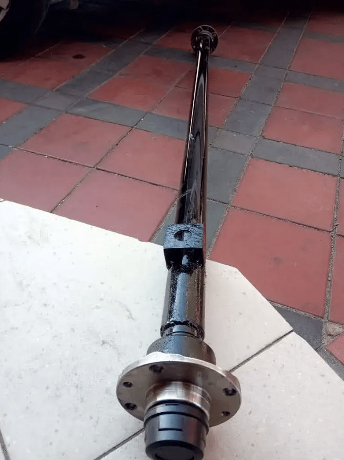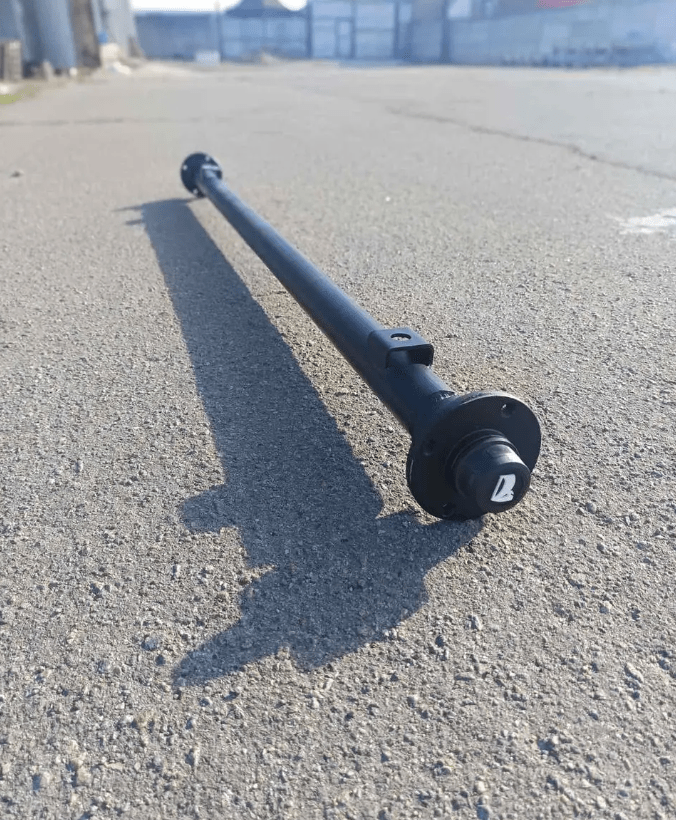 Основой балки является прочная стальная труба диаметром 48 мм с толщиной стенки 4 мм – такой профиль обеспечивает высокую жесткость и устойчивость к деформациям даже при перевозке тяжелых грузов. Расстояние между посадочными местами колеса составляет 162 см, что позволяет устанавливать балку на прицепы стандартной ширины. Расстояние по центрам креплений под рессору – 126 см, благодаря чему она отлично подходит для рессорных прицепов с шириной борта 130 см.
