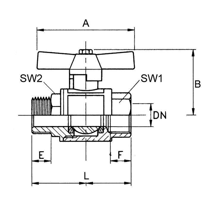 Ball valves with wing lever, female/male thread - K-BKR DREHGRIFF IG AG
