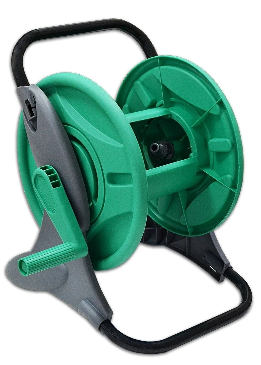 використовується для транспортування шланга до місця поливу і його зберігання між поливами. В залежності від моделі вміщує до 30 або до 45 метрів шланга діаметром 3/4" або 1/2". Барабан виготовлений з високоякісного пластику стійкого до механічних пошкоджень, впливу ультрафіолетового випромінювання і перепадів температури. Оснащений спеціальною котушкою, за допомогою якої відбувається накручування шланга. Вона сконструйована так, що шланг при намотуванні не перекручується і не заплутується. Має металеві ніжки для стійкості. Стаціонарний барабан зручний у використанні на невеликих садових ділянках. Завдяки своєму компактному розміру, дозволяє економити місце при зберіганні садового шланга.