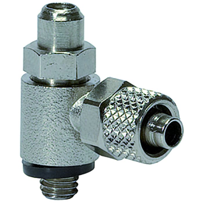 For regulation of a cylinder piston speed at both ends and control of flow rates. Designed as a banjo-type valve with a hollow bolt and ring piece for mounting directly. Compact type of construction, also ideal where space is restricted.