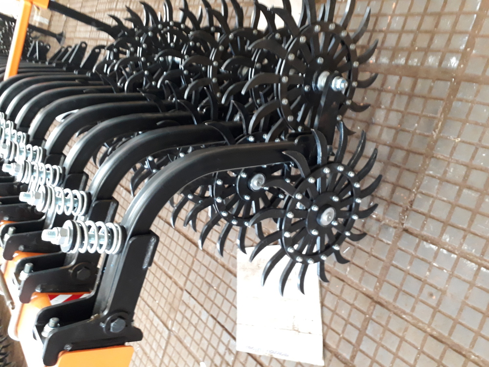 1) Щадящий — для работы по вегетирующим растениям звездочки расположены изгибом по направлению движения и обеспечивает почти вертикальное вхождение иглы — зуба в почву, что не повреждает растение.