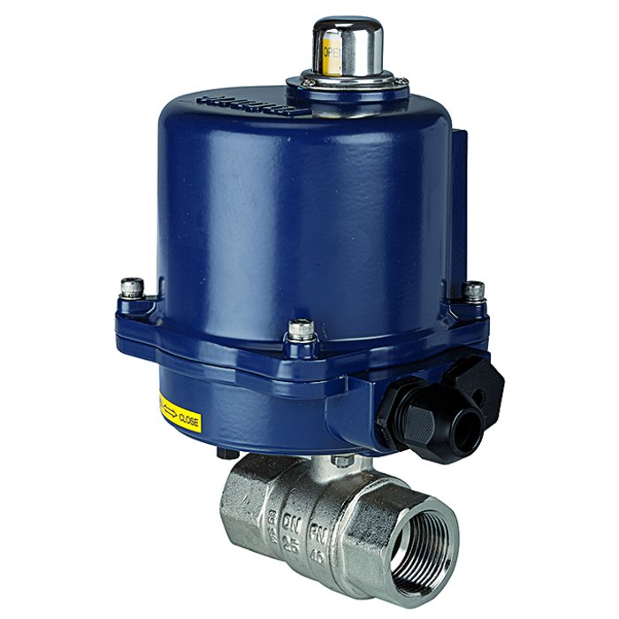 Voltage range 230 VAC, 50 Hz or 24 VDC. 2-way cock, full bore, for neutral gases and liquids. <br>Reversible electric rotary actuator.