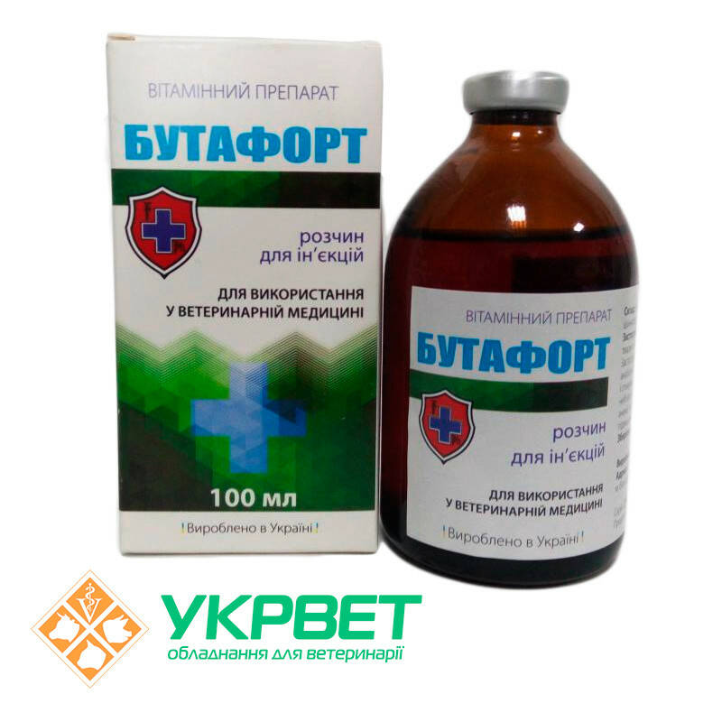Фармакологические свойства: Бутафорт - комплексный препарат, который применяется для коррекции и нормализации обменных процессов у животных и птицы.