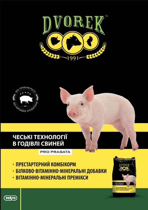 Лінійка продуктів під ТМ DVOREK- спеціально розроблена для потреб своїх клієнтів компанією ТЕКРО. Чеська компанія ТЕКРО заснована в 1991 році і на сьогоднішній день є провідною компанією України та лідером ринку Чехії та Словаччини з виробництва вітамінно-мінеральних сумішей, концентратів, преміксів та готових кормів.