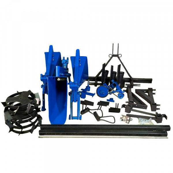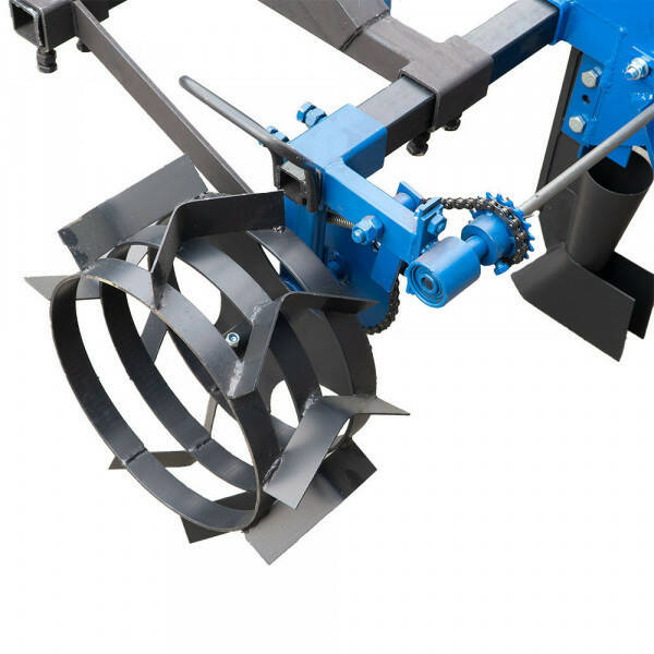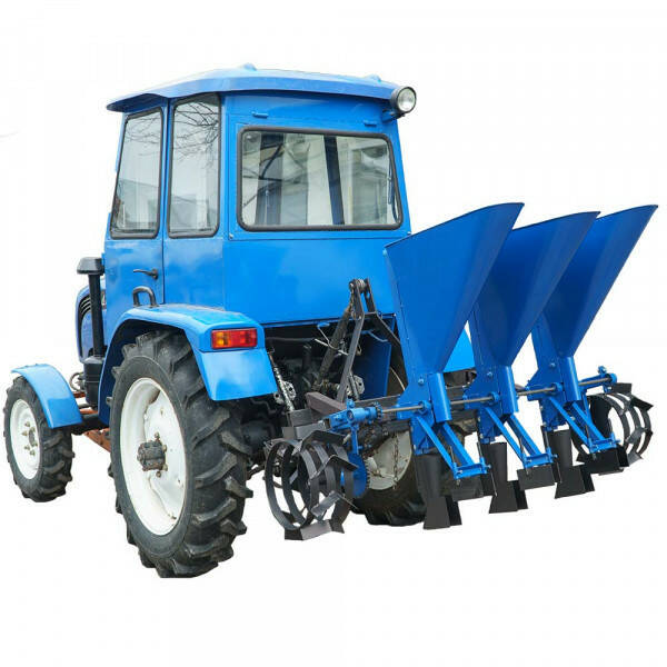 Часникосаджалка 3-рядна (для мінітрактора) (ланцюг з подвійною ложкою Ø34, Ø24,5) (ЧС24) призначена для агрегатування з мінітракторами. Конструкція причіпного вузла розрахована під кріплення в трьох точках і використання системи гідравлічного підйому.