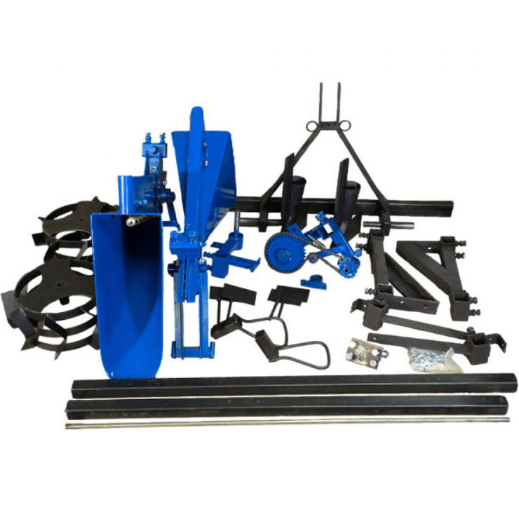 Ширина пути составляет 1400 мм, что обеспечивает хорошую стойкость во время работы. Для удобства транспортировки и подключения сажалка оснащена двумя съемными ручками – их нужно отсоединить перед работой.