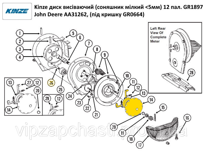 GR1897 Kinze диск висіваючий (соняшник мілкий <5мм) 12 пал. в збор. JD AA31262, (під кришку GR0664)