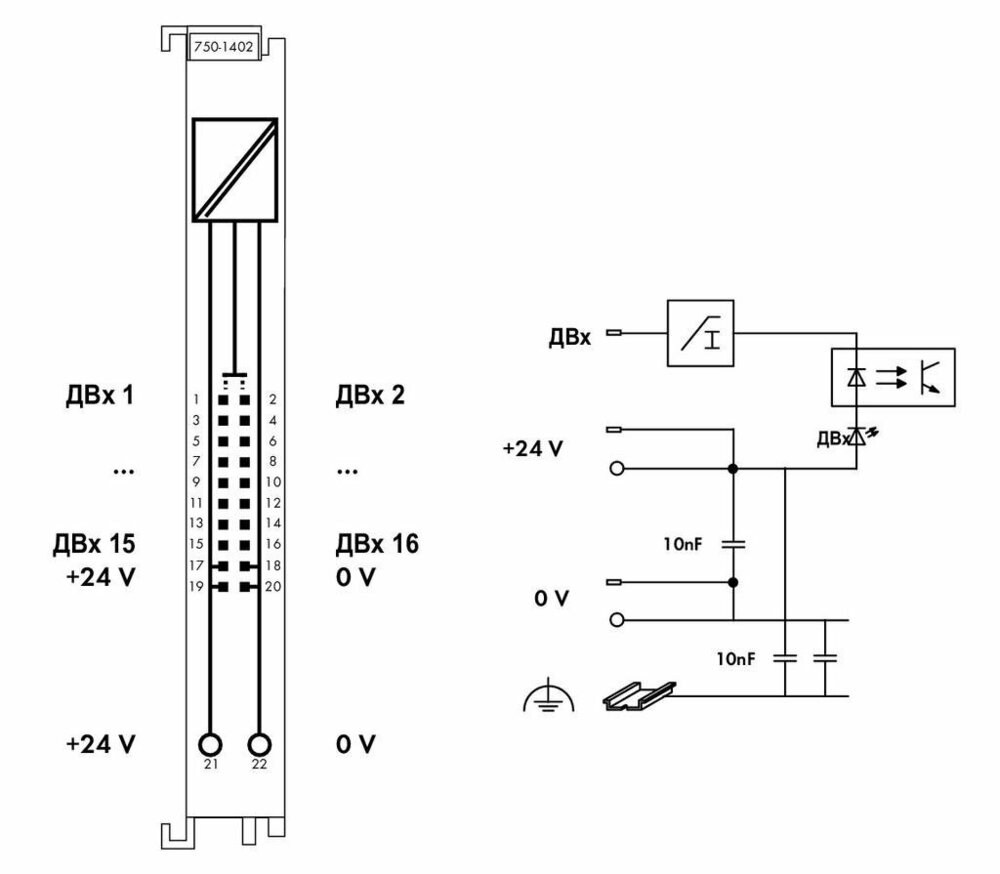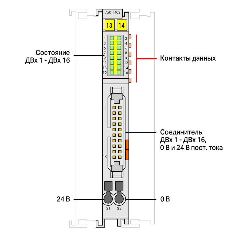 Дискретный модуль ввода 16 каналов, 3 мс; Включение по низкому уровн Wago.