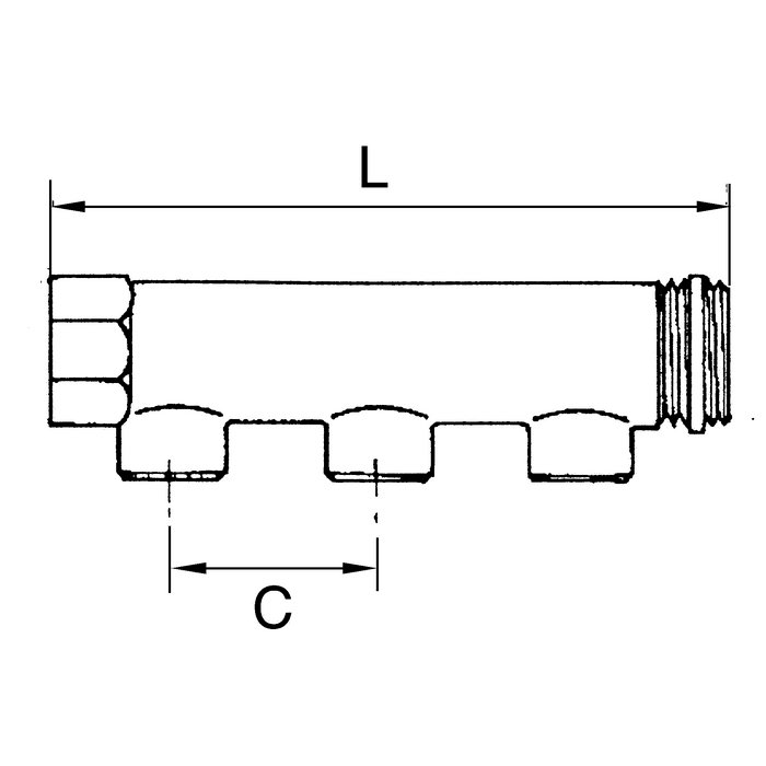 For assembling compressed air taps.End fittings with 1 x male and 1 x female thread, outlets optionally with male or female thread.