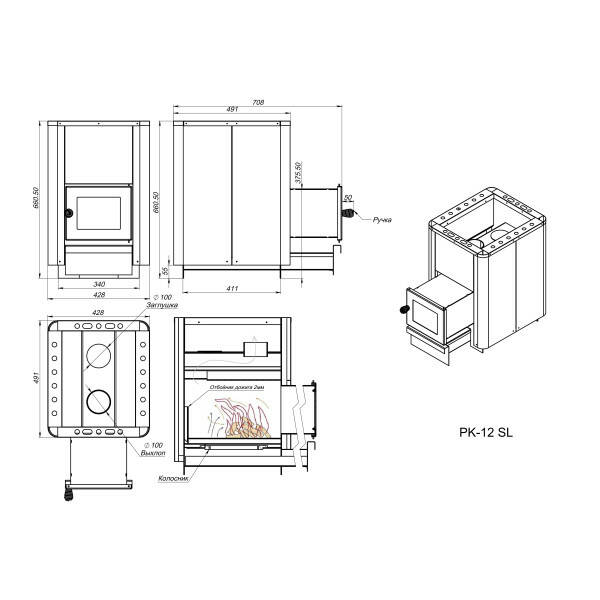Печь для бани PAL PK-12 SL anthracite спроектирована и изготовлена с использованием европейских стандартов качества, а также высококачественных материалов. Благодаря выносу дверцы топки в предбанник, можно значительно удобнее закидывать поленья в топку, не заходя в саму парилку – а соответственно не занося туда мусор и мелкие щепки. Дверца со стеклом позволяет любоваться языками пламени внутри топки, а также контролировать процесс горения, не открывая при этом дверку. Приятный внешний вид делает эту печь красивым дополнение к интерьеру Вашей парилки и бани. Вместимость камней PK-12 SL составляет 40 кг, такого объема достаточно для отопления парилки объемом до 12 кубических метров. Камни нагреваясь, даже после затухания огня еще долго могут прогревать помещение.