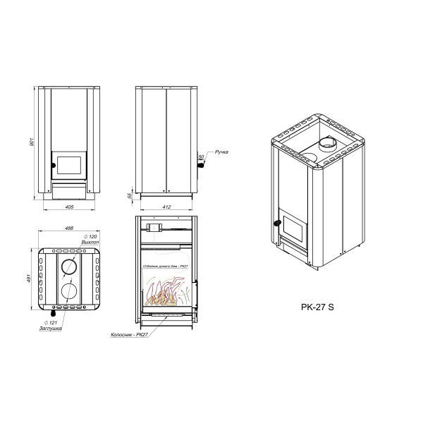 Печь для бани PAL PK-27 S anthracite спроектирована и изготовлена с использованием европейских стандартов качества, а также высококачественных материалов. Дверца со стеклом позволяет любоваться языками пламени внутри топки, а также контролировать процесс горения, не открывая при этом дверку. Приятный внешний вид делает эту печь красивым дополнением к интерьеру Вашей парилки и бани. Вместимость камней PK-27 S составляет 60 кг, такого объема достаточно для отопления парилки объемом до 27 кубических метров. Камни нагреваясь, даже после затухания огня еще долго могут прогревать помещение.