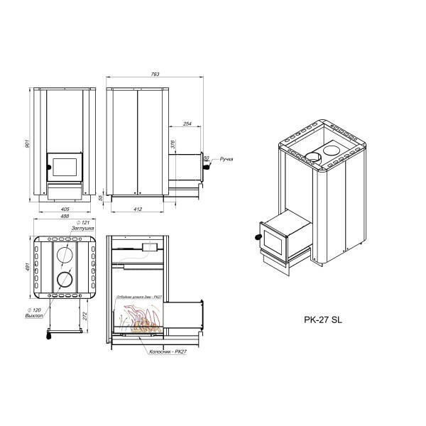 Печь для бани PAL PK-27 SL anthracite спроектирована и изготовлена с использованием европейских стандартов качества, а также высококачественных материалов. Благодаря выносу дверцы топки в предбанник можно значительно удобнее закидывать поленья в топку, не заходя в саму парилку – а соответственно не занося туда мусор и мелкие щепки. Дверца со стеклом позволяет любоваться языками пламени внутри топки, а также контролировать процесс горения, не открывая при этом дверцу. Приятный внешний вид делает эту печь красивым дополнением к интерьеру Вашей парилки и бани. Вместимость камней PK-27 SL составляет 60 кг, такого объема достаточно для отопления парилки объемом до 27 кубических метров. Камни нагреваясь, даже после затухания огня еще долго могут прогревать помещение.