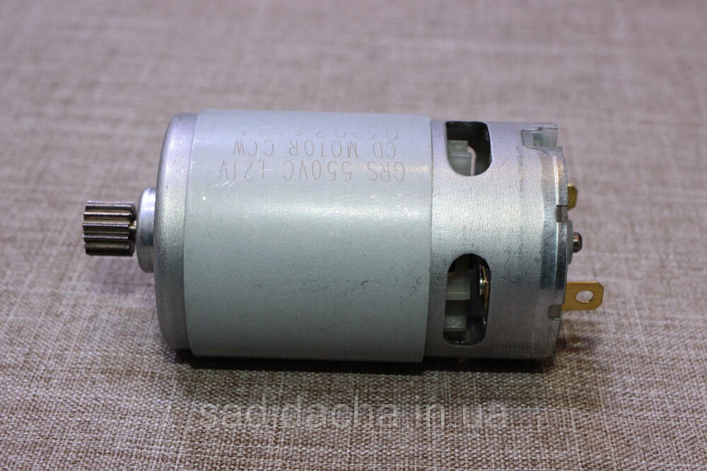 Универсальный электромотор с шестеренкой для Цепной мини пилы 21вольт GRS 550VC. Оригинальное фабричное изделие подходит к другим Мини пилам и шуруповертам при соответствии размеров. 14 шлицов.