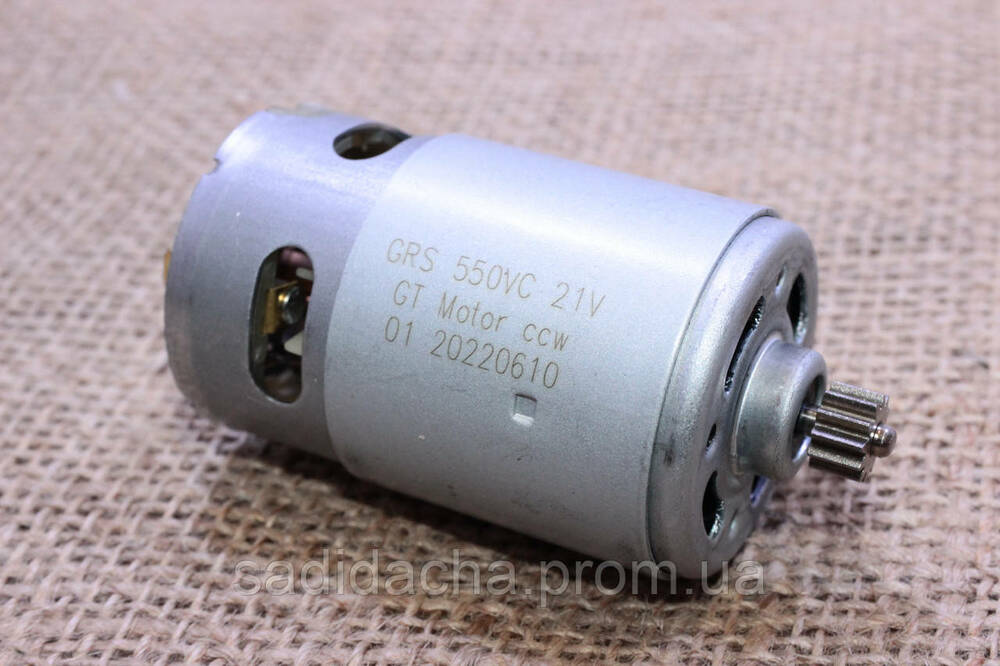 Универсальный электромотор с шестеренкой для Цепной мини пилы 21вольт GRS 550VC. Оригинальное фабричное изделие подходит к другим Мини пилам и шуруповертам при соответствии размеров. 12 шлицов.