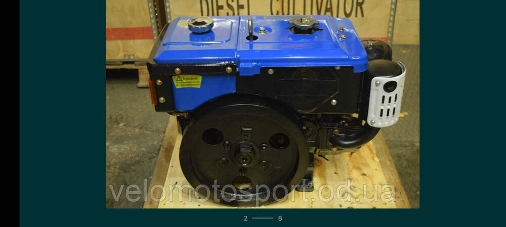 Одноцилиндровый, горизонтальный, 4-тактный, с водяным охлаждением дизельный двигатель