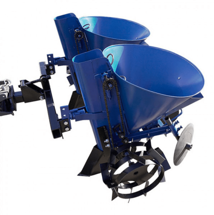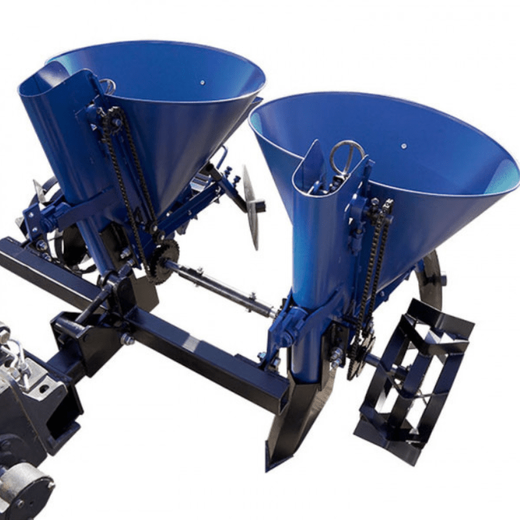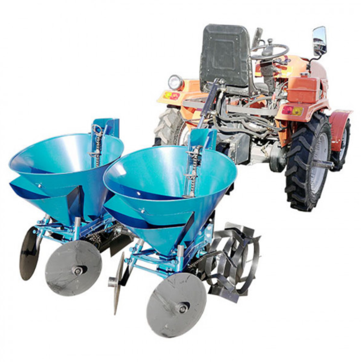 Двухрядная картофелесажалка для мототрактора с бункером для удобрений