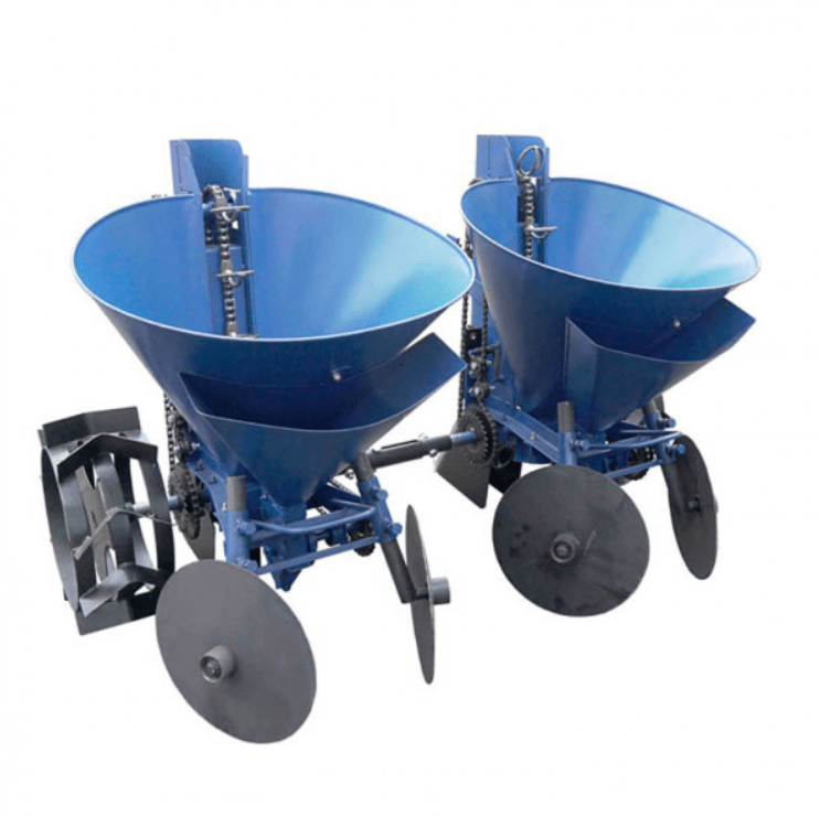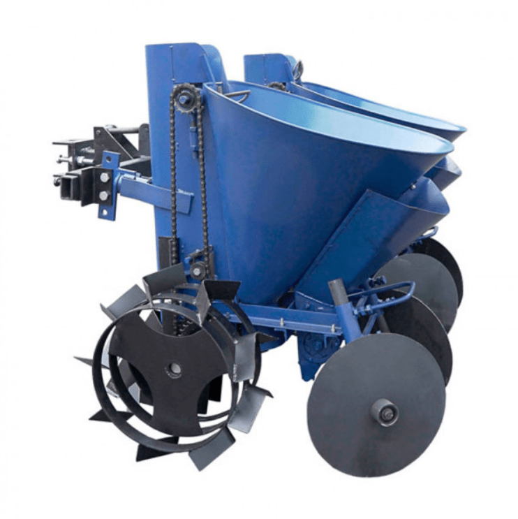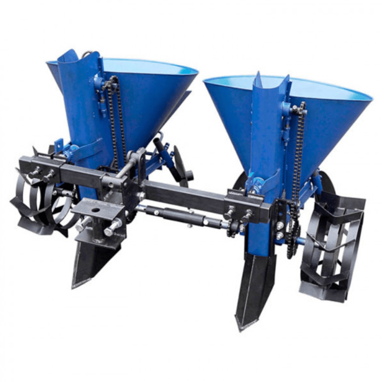 Двухрядная картофелесажалка для мототрактора (с регулируемым междурядьем) с бункером для удобрений