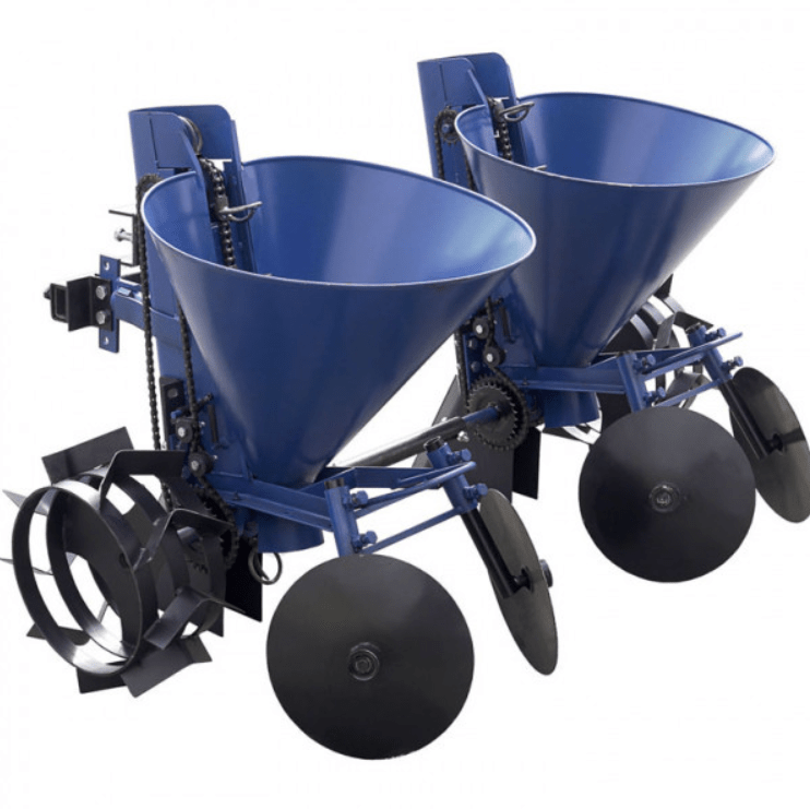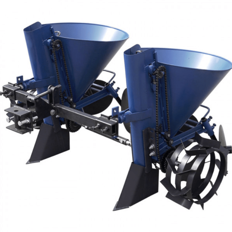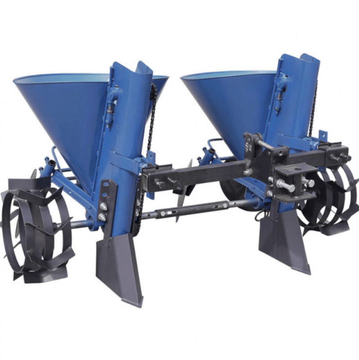 Двухрядная картофелесажалка для мототрактора с регулируемым междурядьем