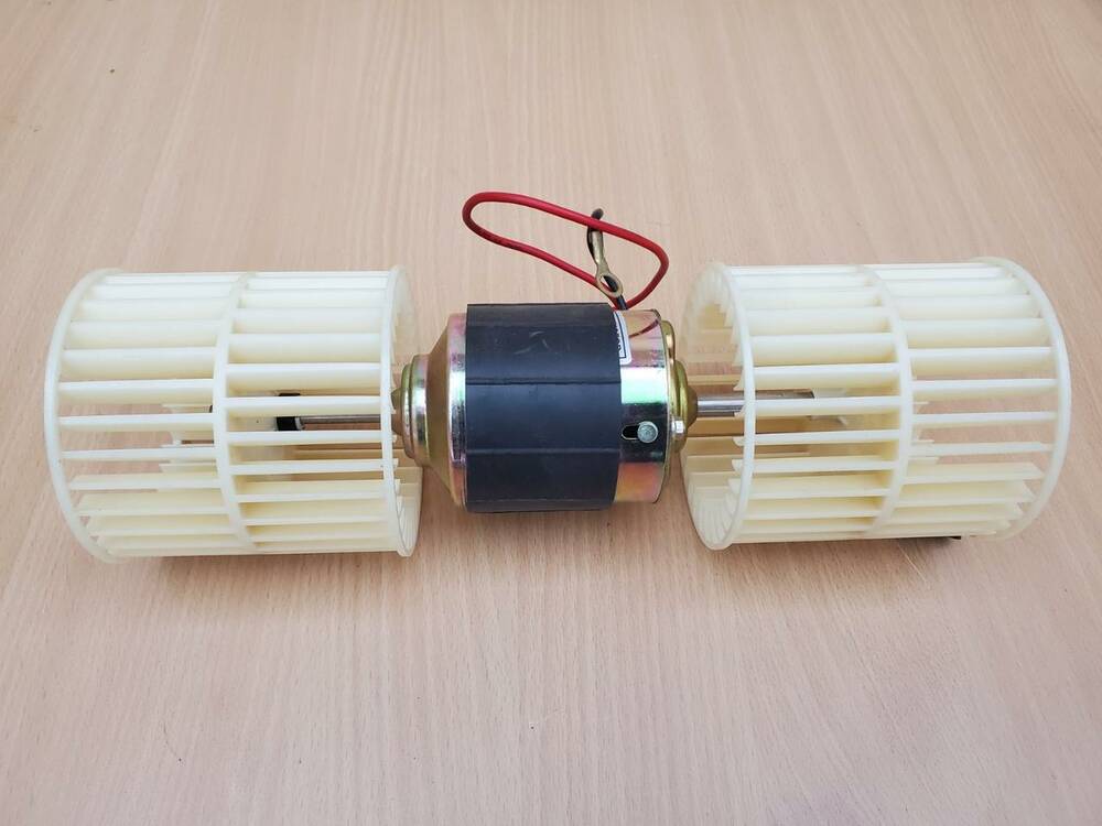 Універсальний електродвигун для блока випаровувача кондиціонера для авто- та спецтехніки на 12V або 24V зі збільшенною крильчаткою 100*100 мм. (ширина*діаметр). Довжина може регулюватися за рахунок рухомих крильчаток на валу. Також є електродвигуни стандартних розмірів крильчатки 85*85 мм.