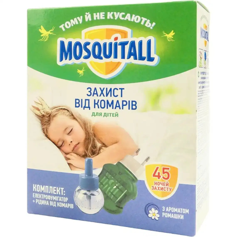 Электрофумигатор с жидкостью от комаров Mosquitall Нежная защита для детей 45 ночей 30 мл