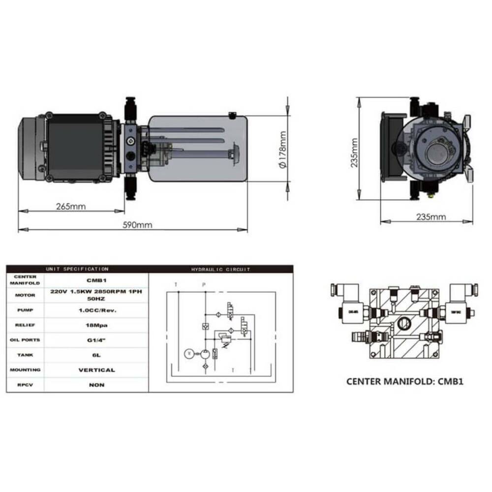 Двигатель: 220 В, 1.5 кВт, 2850 оборотов, 1 РН, 50 Гц