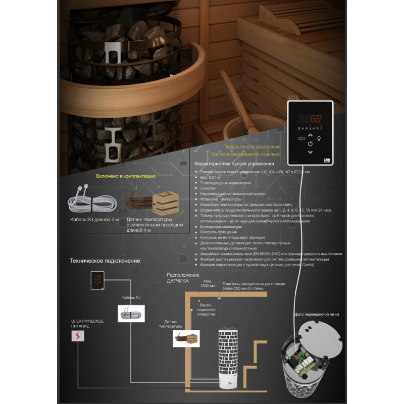Характеристики электрокаменки Sawo Aries ARI3-60Ni2-P + пульт Saunova 2.0: