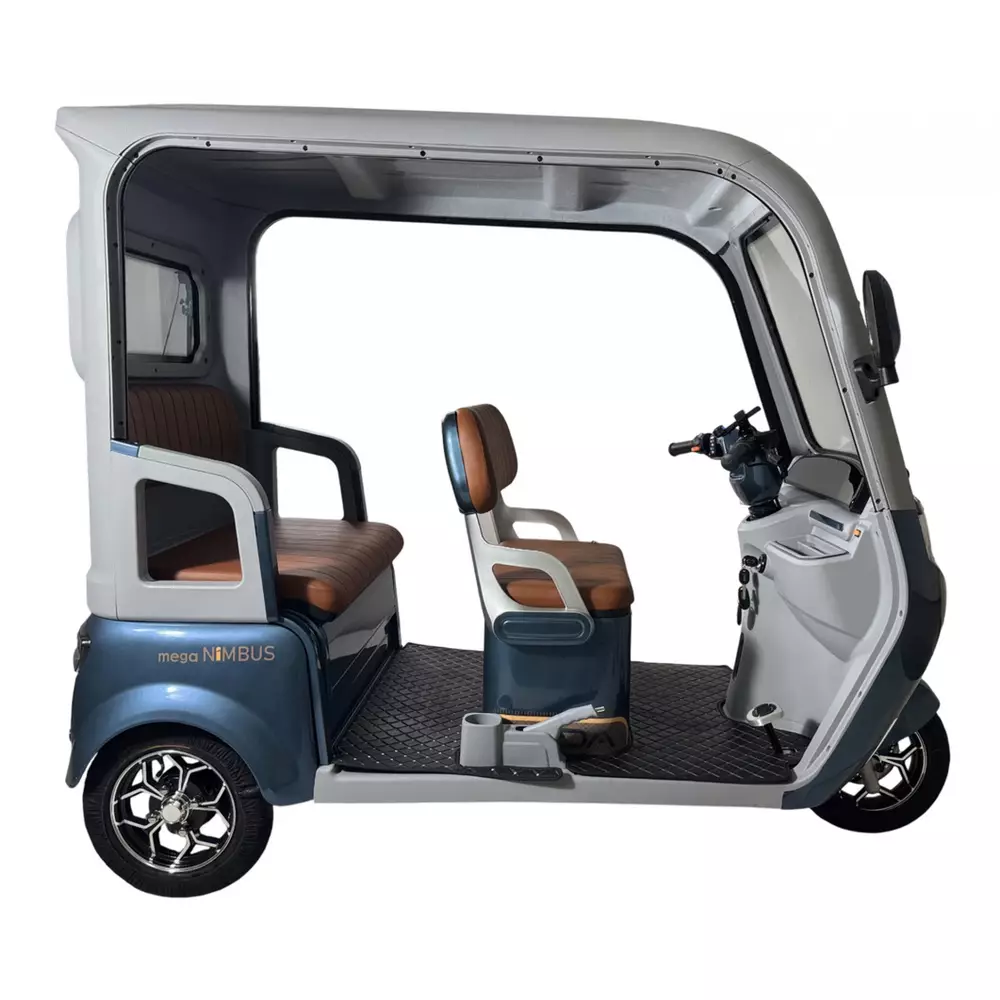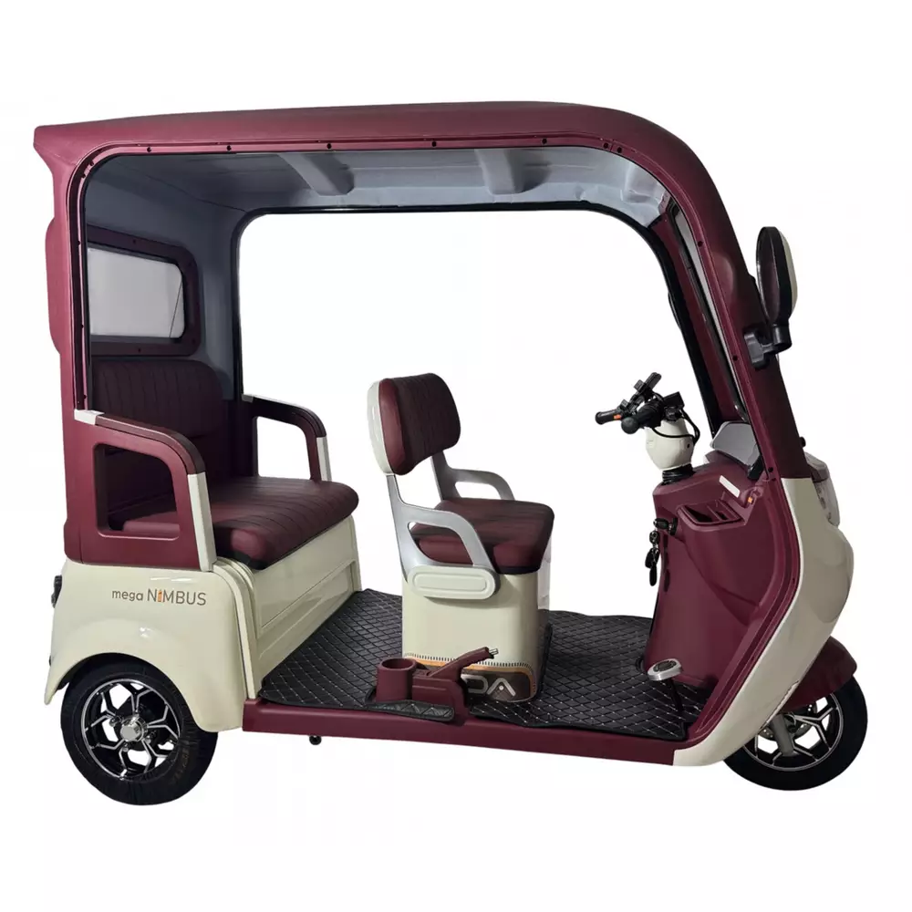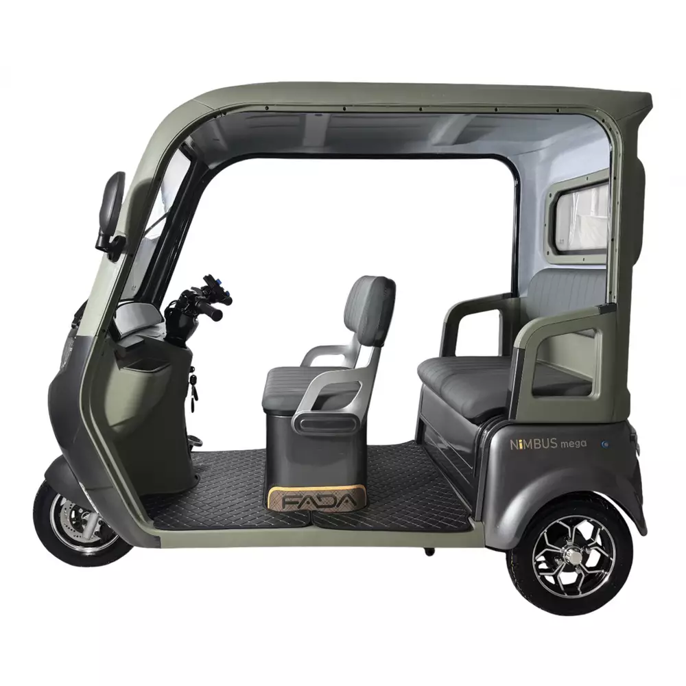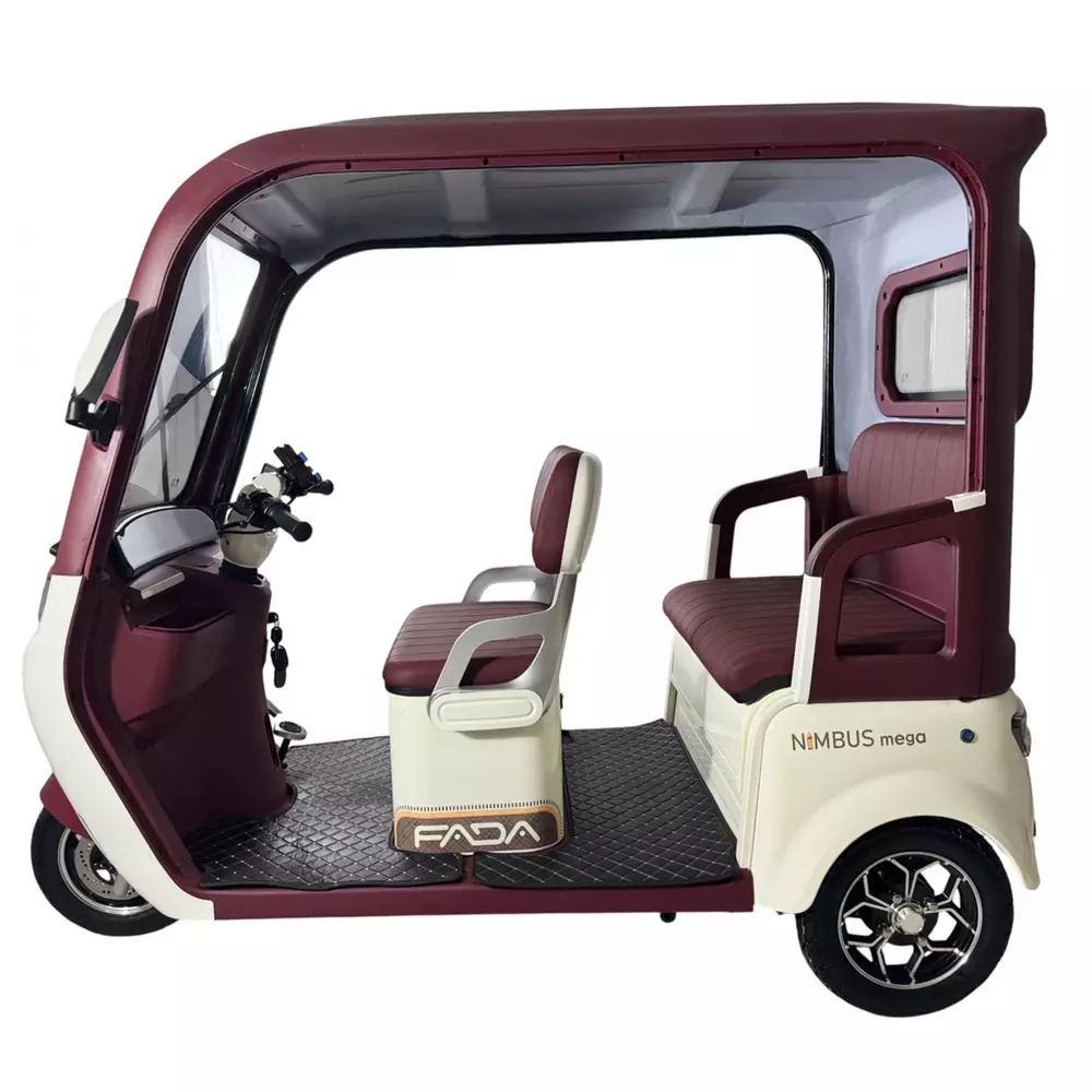 Электротрайк Фада FADA NiMBUS MEGA 1200W  - Усовершенствованный дизайн обновленной NiMBUS MEGA спроектирован в первую очередь для удобства эксплуатации и максимального комфорта в управлении.Новые элементы пластика и материалов внутренней отделки салона, фары головного света и зеркал удачно дополняют не только внешний вид модели, но и ее функционал в паре с красивой внутренней отделкой салона.