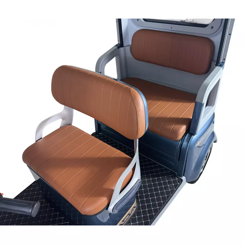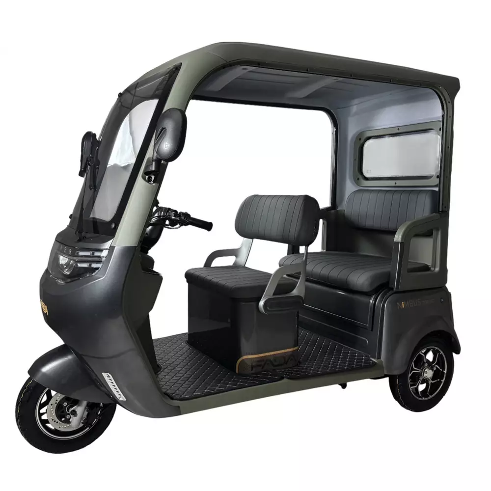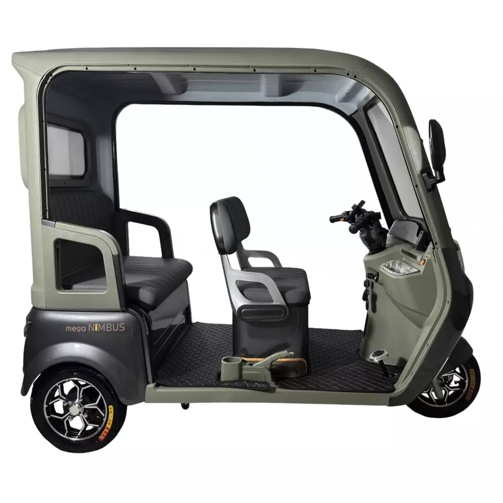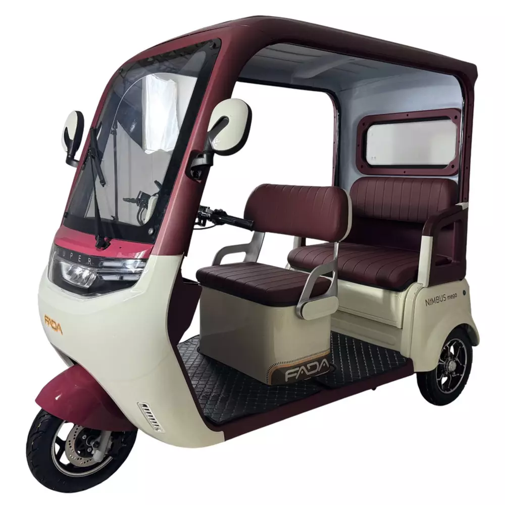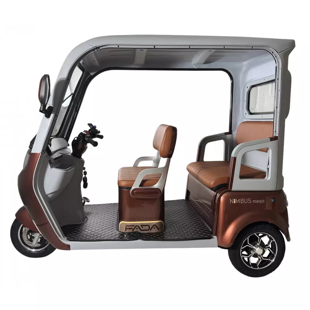 Электротрайк Фада FADA NiMBUS MEGA 1200W  - Усовершенствованный дизайн обновленной NiMBUS MEGA спроектирован в первую очередь для удобства эксплуатации и максимального комфорта в управлении.Новые элементы пластика и материалов внутренней отделки салона, фары головного света и зеркал удачно дополняют не только внешний вид модели, но и ее функционал в паре с красивой внутренней отделкой салона.