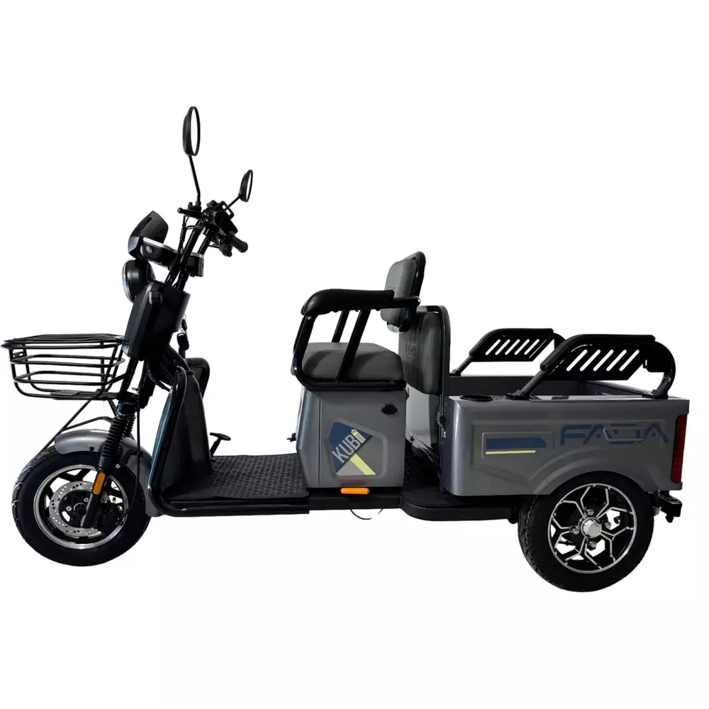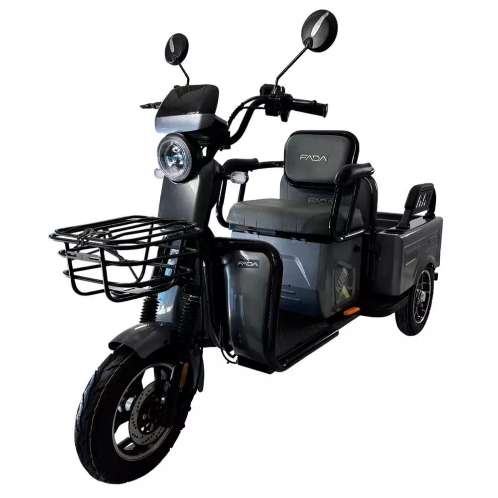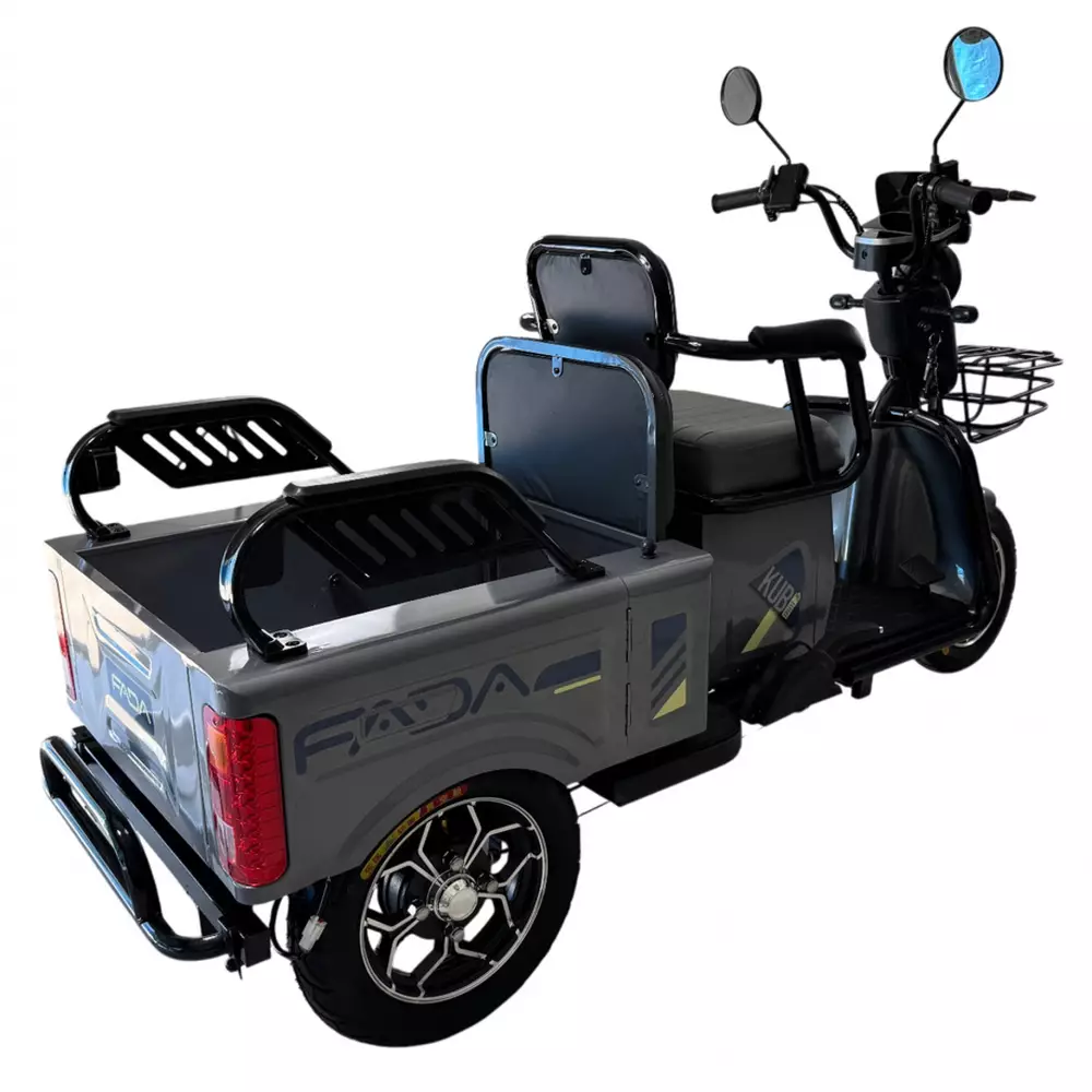 Електротрайк вантажний Фада FADA KUBi, 1000W - Оновлена в 2025 році модель FADA KUBi є зручним трансформером для використання у господарській діяльності. Модель оснащена переднім багажним кошиком для зручного розміщення малогабаритної поклажі та функціональним простором ззаду, який може трасформуватись в місце для сидіння пасажиру або в кузов, для перевезнення відносно невеликого вантажу.