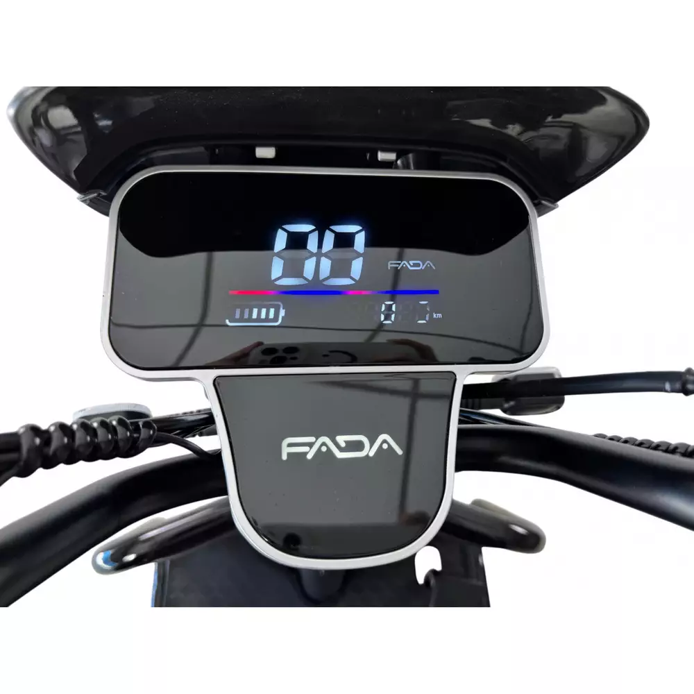 Основною технічною особливістю трайку FADA є більш потужніший електродвигун на 1000 Ват. Батарейний модуль на 60 Вольт складається з 5-ти тягових АКБ, кожна з батарей тепер по 25 А/год.