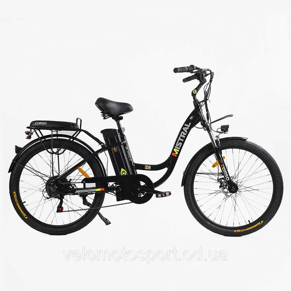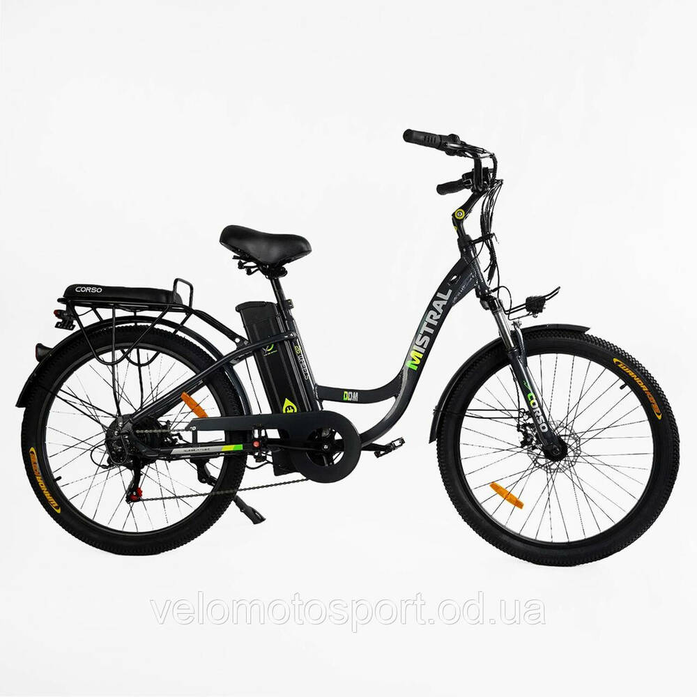 Електровелосипед Corso «Mistral» 26" дюймів MS-26919 (1) ТЕМНО-СІРИЙ, рама алюмінієва, двигун 500W, акумулятор