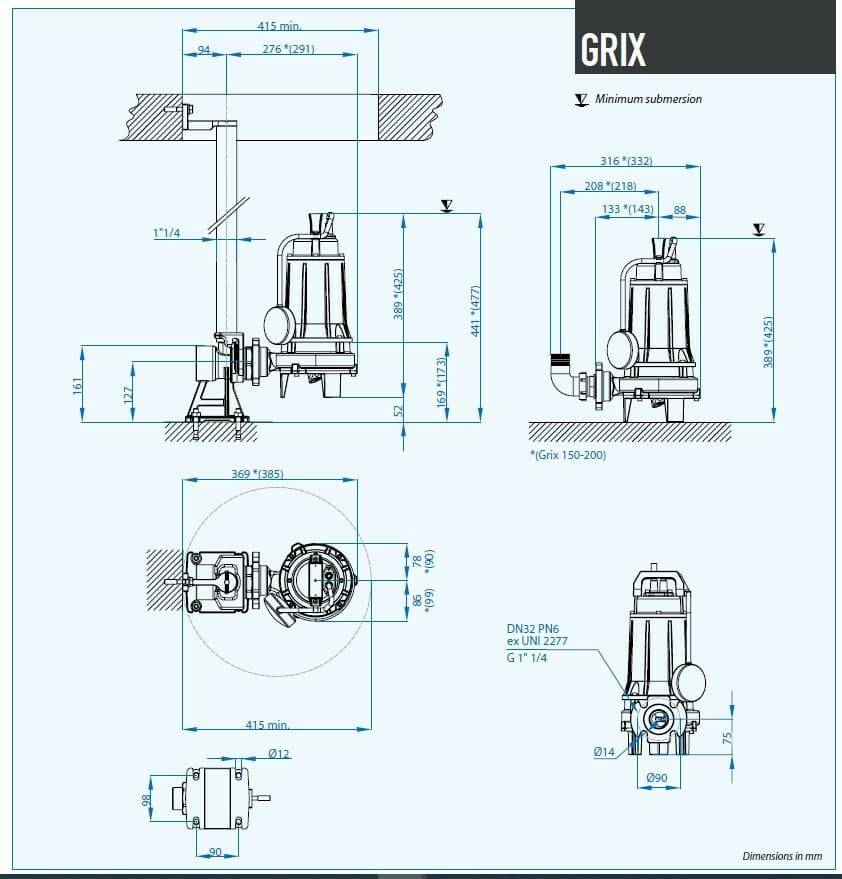 Застосування насосу: погружні насоси серії Grix мають вбудований мацератор на вході. Це руйнує тверді частинки в стічних водах, що дозволяє транспортувати їх по відносно вузьким, часто вже існуючим трубах. Сфери застосування: побутові стічні води, рідини з зваженими твердими частинками, коли потрібен високий тиск (Hm).