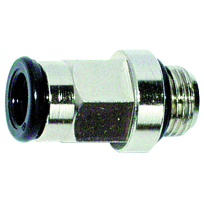 Economy yet very high-quality series of push-in fittings made of nickel-plated brass. Compact, space-saving, lightweight design. An O-ring in the fillet at the end of the thread guarantees a tight connection for all male thread parts, even on rough surfaces.