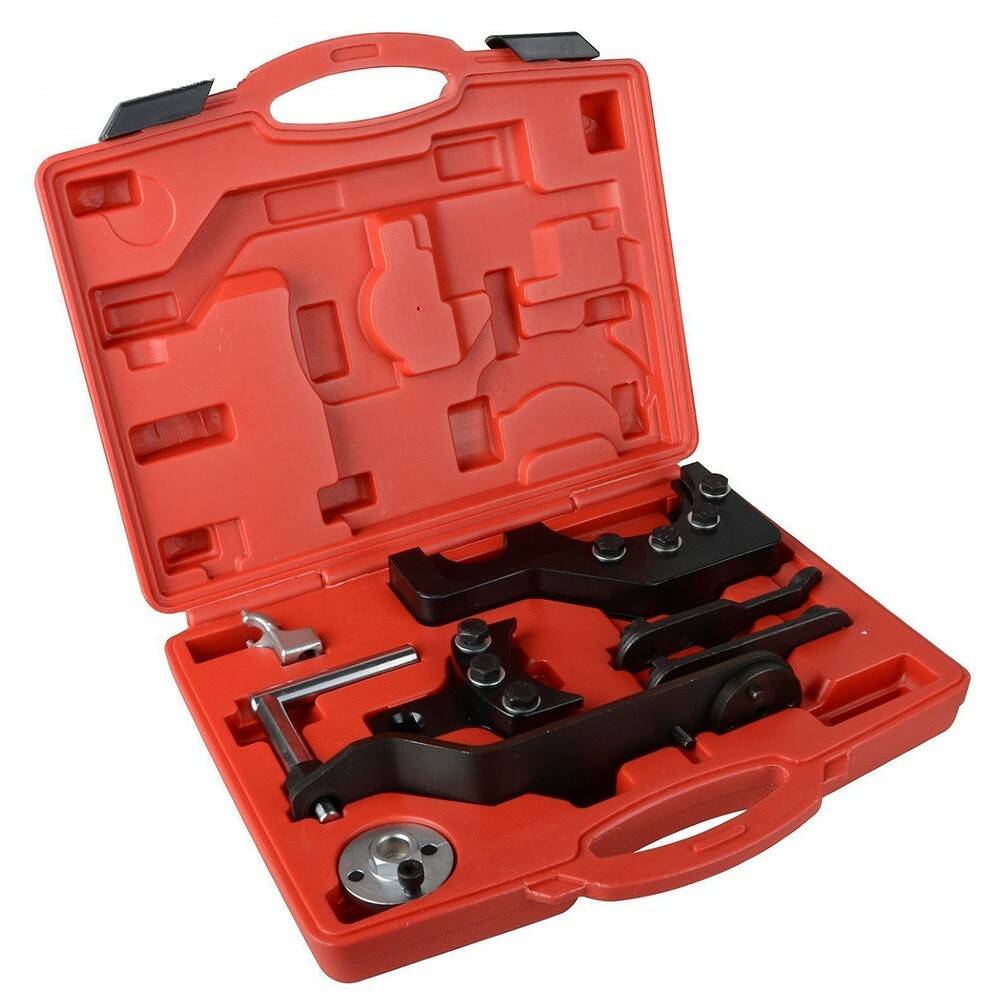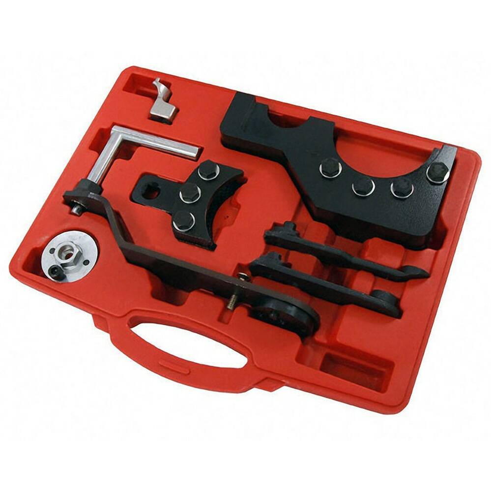 Комплект позволяет блокировать распределительный вал для проверки и регулировки. Он отлично подходит для монтажа / демонтажа 5-ти и 10-ти - цилиндровых зубчатых колес двигателя, изготовленных после 2003 года.