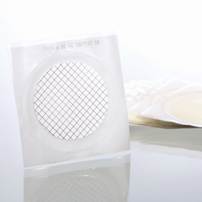 Фильтр из белой нитроцеллюлозы покрыт черной сеткой.