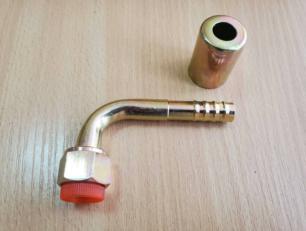 Фітинг кондиціонера сталевий з внутрішньою різьбою для шланга (накидна сталева гайка) Розмір фітинга №8, розмір шланга №8. Різьба 3/4-16UNF. Кутовий 90°
