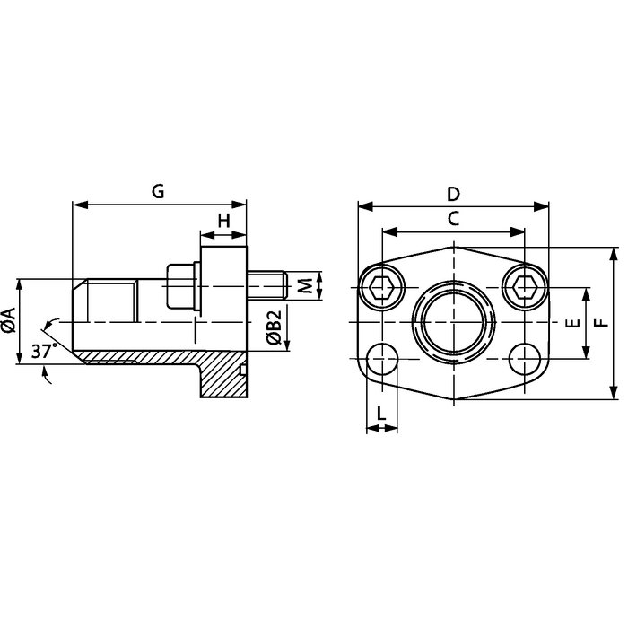 | AFG 102 JIC 1 5/16 | 3000 | 315 | 1" | UN 1.5/16" -12 | 21.5 | 52.4 | 70 | 26.2 | 55 | 63 | 16 | 11.5 | 3/8" x 1.1/4" | M 10 x 30 |