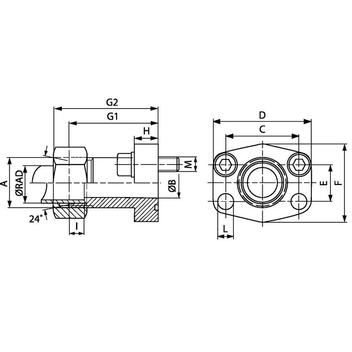 | AFG 104 M/L28 | 28 | L | 160 | 1.1/4" | M 36 x 2 | 24 | 58.7 | 30.2 | 65 | 7.5 | 11.5 | 7/16" x 1.1/2" | M 10 x 35 |