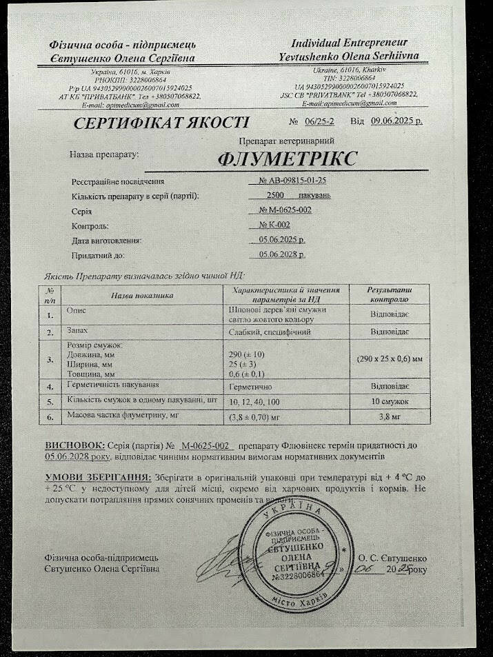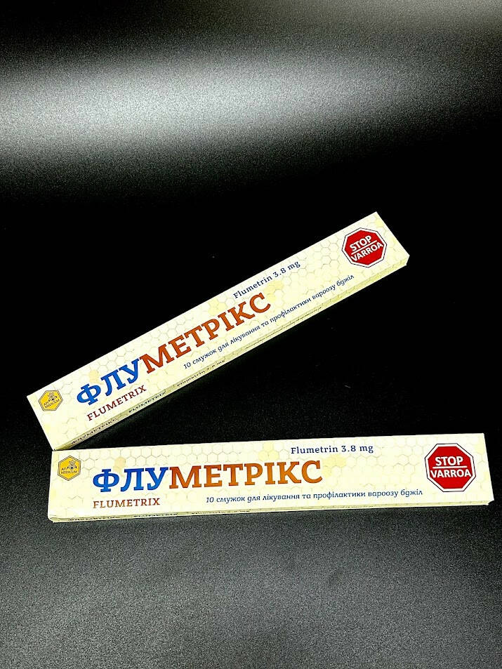 Флуметрикс — это сертифицированные акарицидные полоски с флуметрином для лечения и профилактики варроатоза у пчёл. Каждая полоска содержит 3,8 мг флуметрина — пиретроида пролонгированного действия, который парализует клеща и приводит к его гибели. Препарат обеспечивает эффективность до 99%, безопасен для пчёл и не накапливается в мёде и воске.