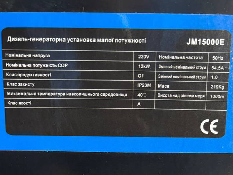 Генератор дизель JM15000E 12KW (однофазний + свічка розжарювання) TT AGRO MOTO
