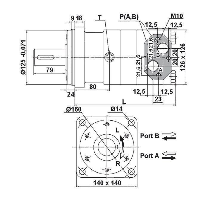 Входное и обратное давление с трубопроводом для слива масла макс.