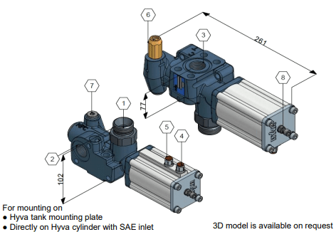 Гидравлический клапан Hyva HT-TNK/SAE-1150-190-P1 (аналог 3bolts 4bolts) Hyva