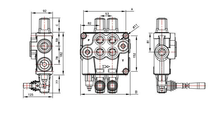 Гидравлический распределительный клапан Р40 с ручным или механическим управлением предназначен для распределения и контроля рабочего потока между генератором (насосом) и исполнительными механизмами (цилиндром, гидромотором и т. Д.). Производится с 1 до 7 плунжерами.