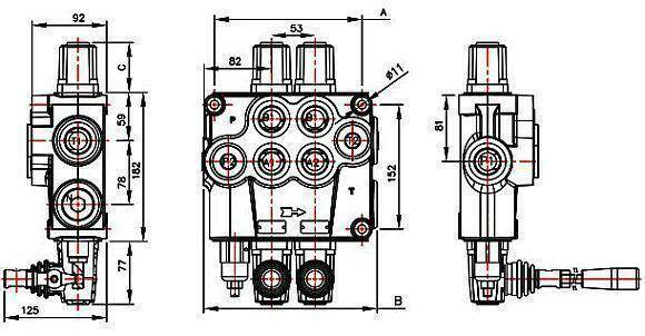 Гидравлический распределительный клапан Р120 с ручным или механическим управлением предназначен для распределения и контроля рабочего потока между генератором (насосом) и исполнительными механизмами (цилиндром, гидромотором и т. д.). Производится с 1 до 4 плунжерами.